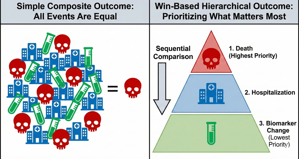 Enter win-based hierarchical composite outcomes (like the win ratio). This approach is a game-changer. It doesn't just count events; it prioritizes them based on clinical importance.